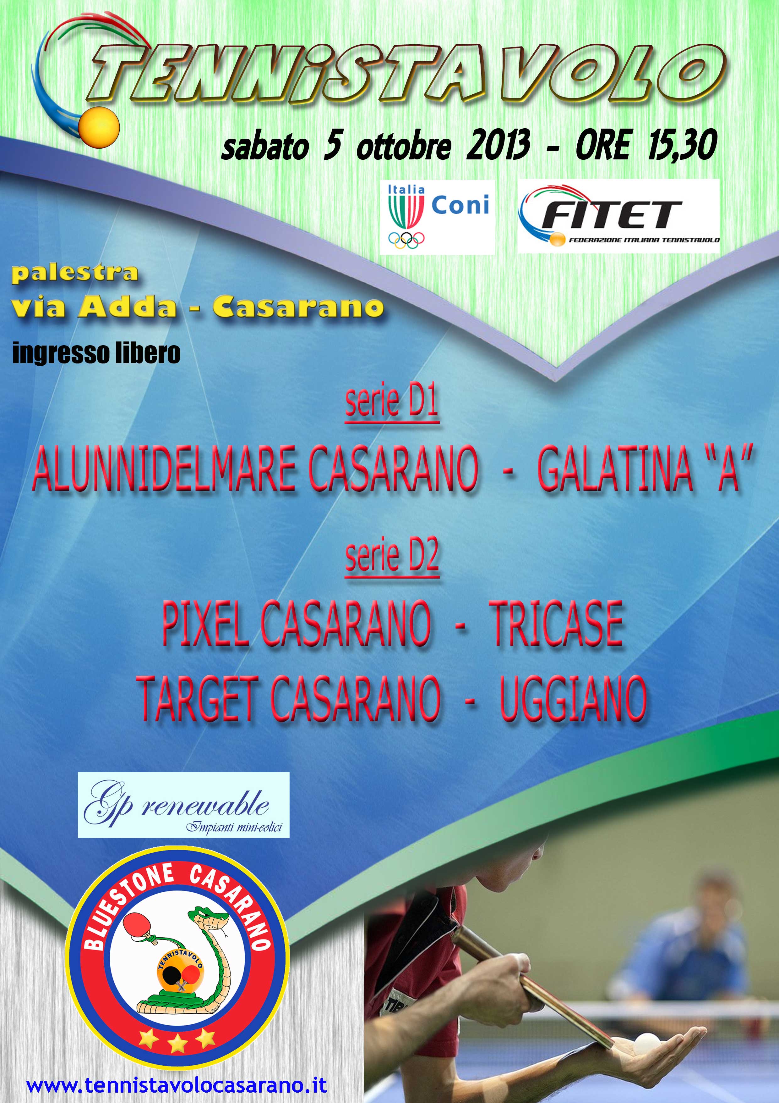 Iniziamo una nuova avventura pongistica. Nell’anno sportivo 2013-2014, il Tennistavolo a Casarano – grazie ai rispettivi sponsors – è iscritta con una squadra in serie D1 e con due squadre in serie D2. Prontissimi per affrontare le compagini provenienti da Galatina, Tricase ed Uggiano. Sarà una bella festa di sport il primo sabato di ottobre nella palestra di via Adda. Accorrete numerosi per sostenerci e crescere insieme. Ingresso Libero.
